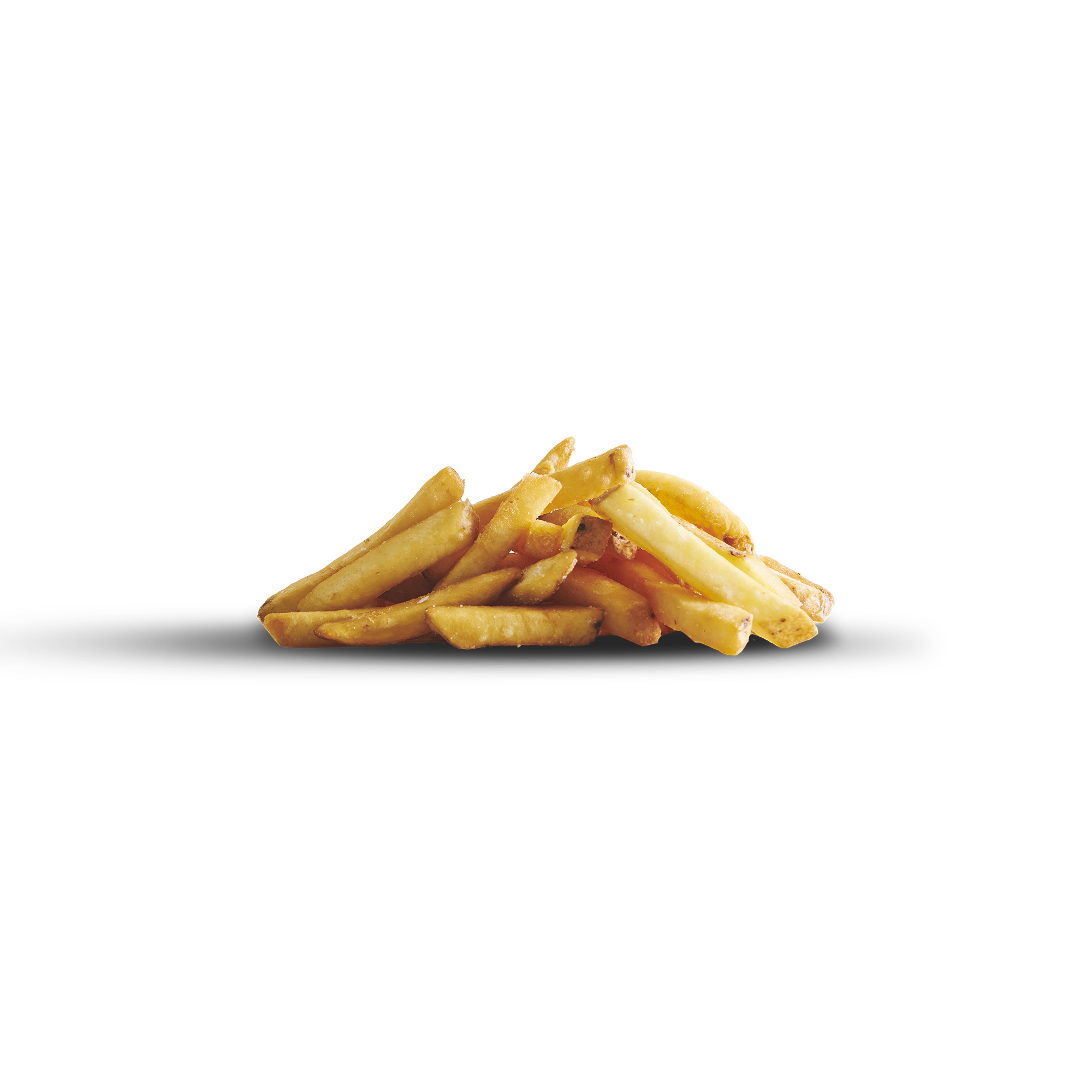 Pommes frites med skræl og barbecuekrydderi. Skriv valgfri dip i kommentarfeltet i checkout.