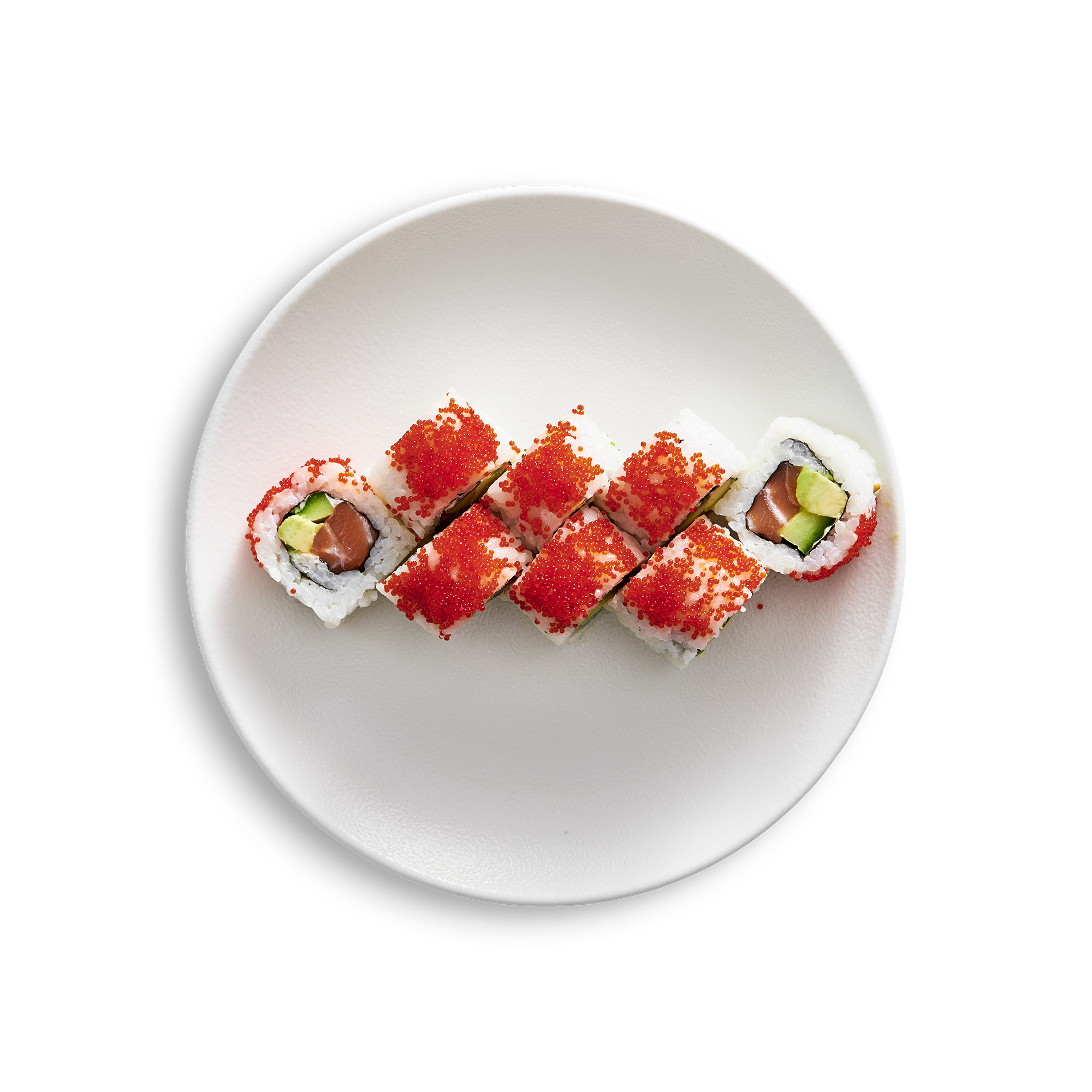 8 stk. laks, flødeost, avocado, agurk og tobiko.