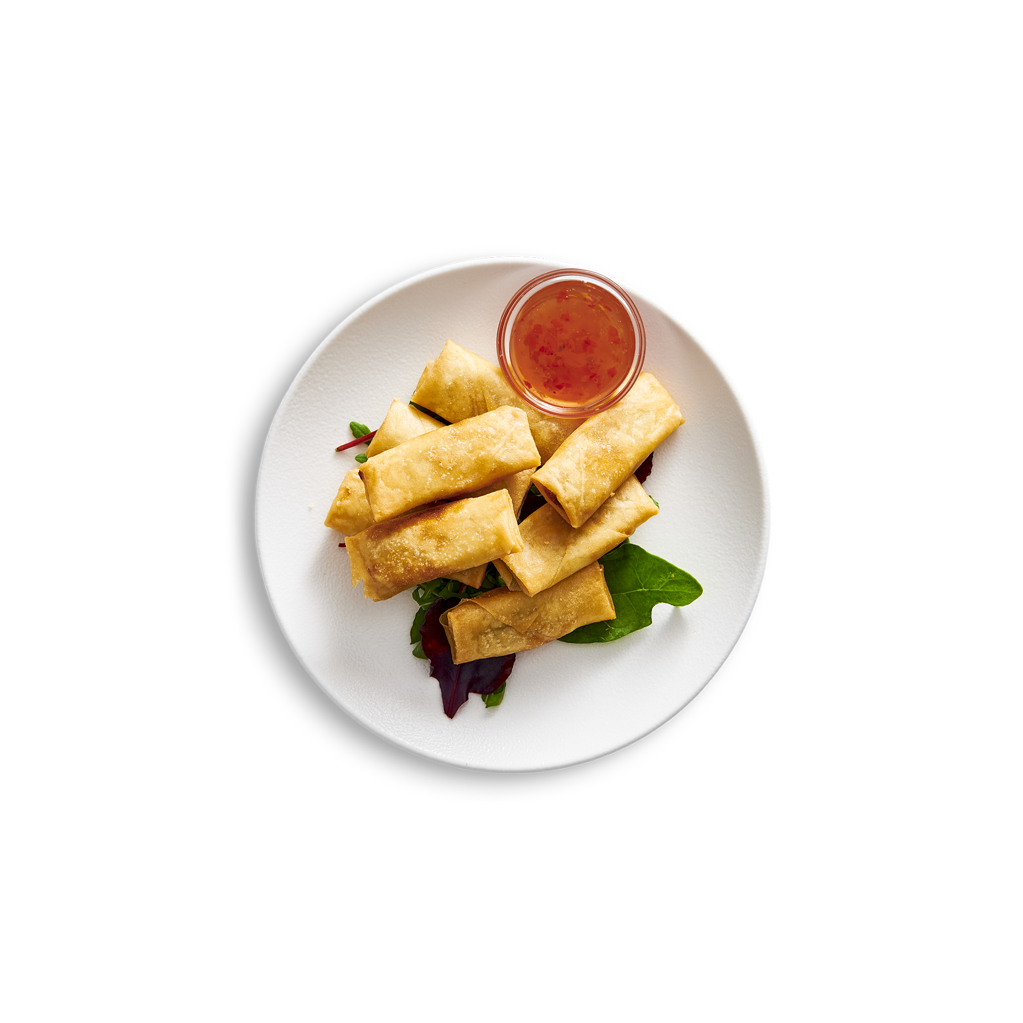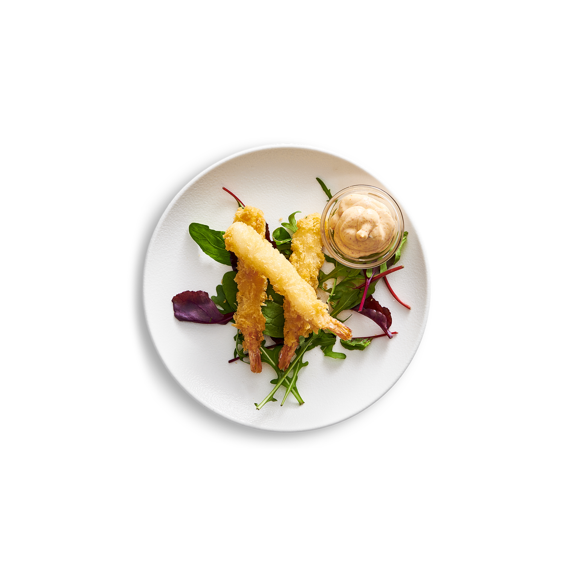 8 stk. dybstegt reje, agurk, avocado, chilimayo, sesam og teriyakisauce.